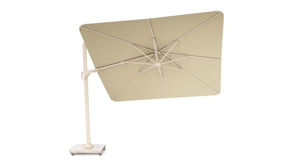 Der Nexus T2 präsentiert sich mit einem frischen, eigenständigen Look. Auffällig sind die abgerundeten Dachkanten, die dem Schirm eine elegante, moderne Linienführung geben und ihn klar von klassischen, eckigen Modellen unterscheiden. Das Ergebnis: ein ruhiges, hochwertiges Erscheinungsbild für Terrasse, Garten oder Pool.