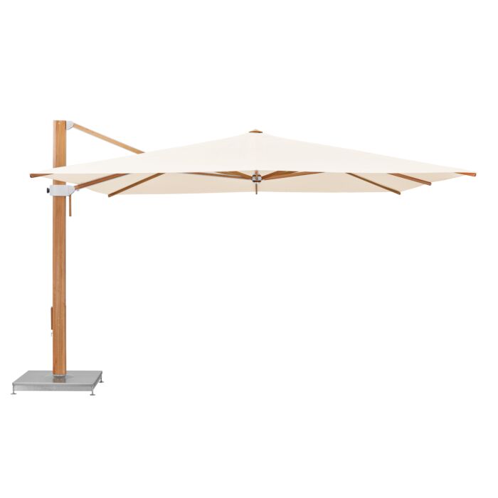 The first class among the wooden umbrellas is now called – AURA. Square in format, this unique free-arm umbrella provides magical moments. Thanks to the side mast, the entire, generous area under the umbrella roof is freely usable.