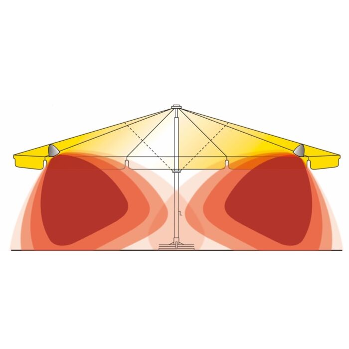 Die perfekte Ergänzung in der Übergangseit oder wenns im Sommer mit Freunden mal etwas später wird... wählen sie selbst, ob sie 2 oder 4 Heizstrahler möchten. Wir lassen die Heizstrahler grundsätzlich außen am Schirm installieren, damit sie die Heizstrahler beim Schließen des Schirms nicht entfernen müssen. Die elektrische Vorrüstung beinhaltet auch einen automatishcen Kontaktschalter, so dass die Heizstrahler nur angeschlatet werden können, wenn der schirm geöffnet ist.