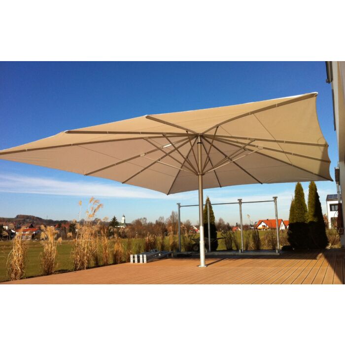 The Facil 110 from the German umbrella manufacturer BIKATEC/SCHNEIDER with 110mm mast diameter features the unique Facil opening system. It opens the glider within a few seconds. The canopy is made of high quality PG3 polyester fabric, which is hand cut and sewn. Many options such as motor, light, heating, side panels and rain gutters can be added optionally. On request also available with PVC- covering with welded seams.
