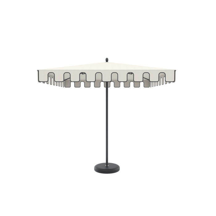 ohne Volant (moderne Ausführung): ![]() mit Volant (klassische Ausführung) Der Volant ist ein am Schirmende angebrachter Besatz, er ist vorranigig von optischer Bedeutung. Er bietet bei tiefstehender Sonne zusätzlich etwas mehr Schutz/Schatten. (I.d.R. ist der Volant zwischen 18-30cm hoch / je nach Modell) |