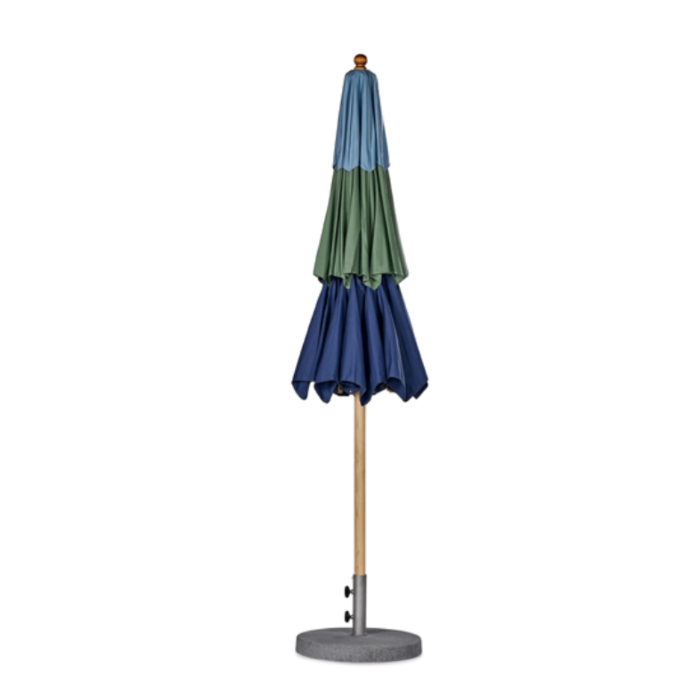 Three overlapping fabric panels in freely selectable colors provide a cheerful play of movement when the wind comes up. At the same time, the fabric arrangement reduces wind pressure, which benefits the stability of the umbrella.