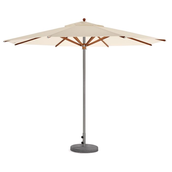 The frame of these umbrellas is made exclusively of 304 grade stainless steel, and the struts are made of high quality teak. The canvas of our coverings are made of durable DOLAN® (100% polyacrylic fabric).These fabrics are water repellent and rot resistant impregnated. All coverings are generally manufactured with a so-called air hood.