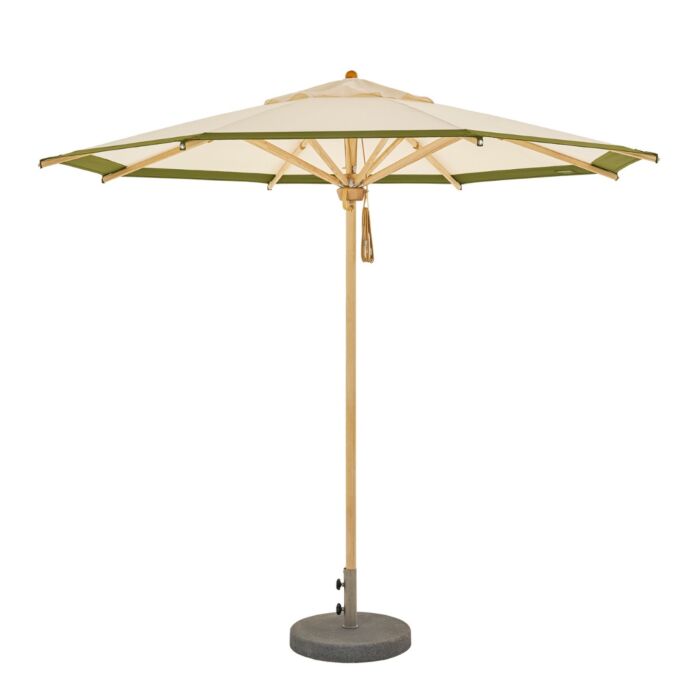 ohne Volant (moderne Ausführung): ![]() mit Volant (klassische Ausführung) Der Volant ist ein am Schirmende angebrachter Besatz, er ist vorranigig von optischer Bedeutung. Er bietet bei tiefstehender Sonne zusätzlich etwas mehr Schutz/Schatten. (I.d.R. ist der Volant zwischen 18-30cm hoch / je nach Modell) |