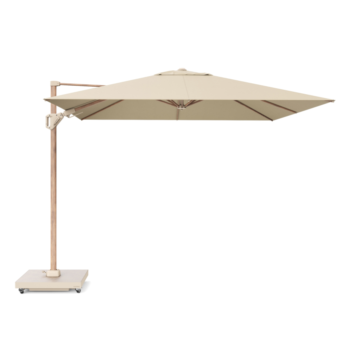 Der SunShade T², das Flaggschiff der SunShade Kollektion, bietet optimalen Schatten dank Neigung nach hinten und zur Seite sowie 360°-Drehung – ganztägig und ohne Umplatzieren.