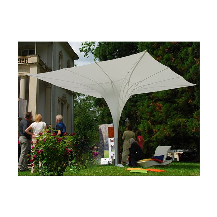 Der Atractione T vom deutschen Schirmhersteller SCHNEIDER mit 90mm oder 110mm Mastdurchmesser besitzt ein ganz spezielles Design.Hierbei wird das Schirmdach durch die Streben von oben gehalten und verleihen dem Schirm so seine unverwechselbare Form.Für die Bespannung stehen verschiedene Stoffqualitäten zur Auswahl, die handwerklich geschnitten und genäht werden. Heizung und Licht sowie ein Motor können optional ergänzt werden.