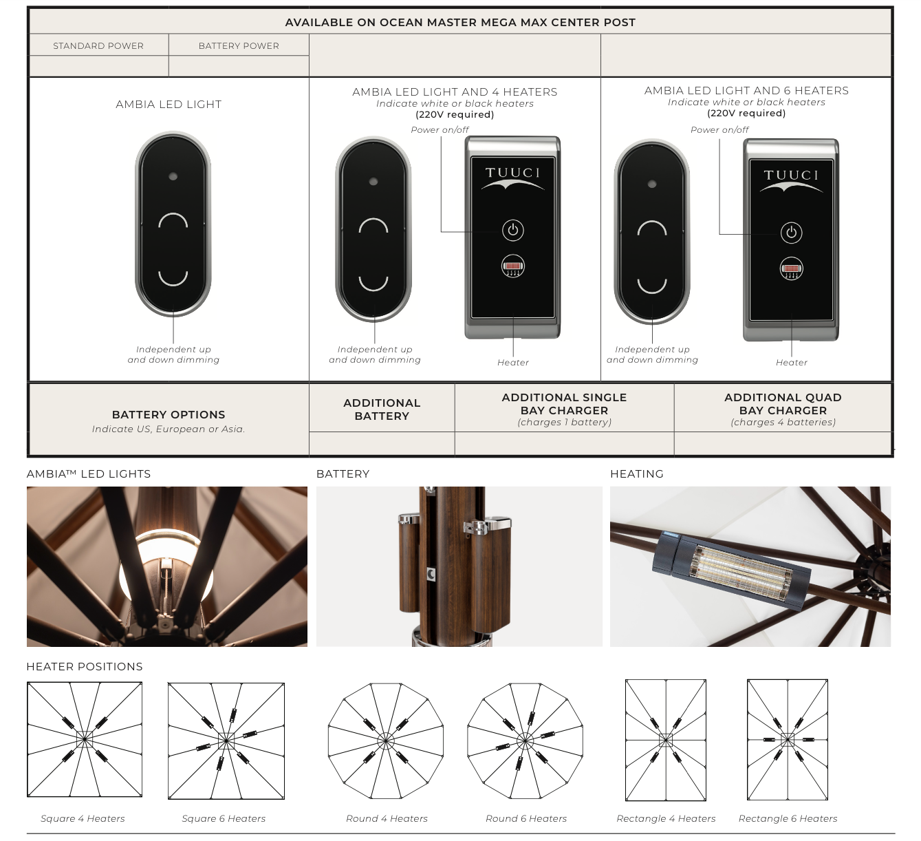 Zusatzausstattung: Auf Wunsch können Sie den Ocean Master Mega Max Classic mit dem Ambia LED System sowie Heizstrahlern ausstatten, sodass Sie Ihren Gästen eine Wohlfühlatmosphäre bieten können.