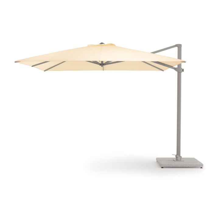 Die schönste „Hängepartie“ des Sommers gibt es in zwei Ausführungen: Die kleineren Modelle mit 3,2 m ø und 3 x 3 m werden von einem hochwertigen Alugestell getragen, das größere mit 4 m ø besitzt Gelenke aus Edelstahl und ein Schirmgestell aus Eukalyptusholz. Die Schirme sind drehbar, beide kleineren auch schwenkbar. Die Bespannung aus DOLAN® (100 % Acylgewebe) wird generell mit einer Lufthaube gefertigt.