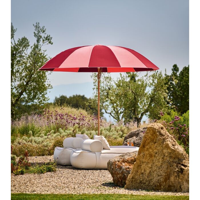 Die Mixed-Version unserer Sonnenschirme kombiniert Segmente aus zwei unterschiedlichen Acryltuchfarben. Diese Farbvielfalt verleiht dem Schirm eine dynamische, individuelle Optik und betont den hohen Designanspruch.