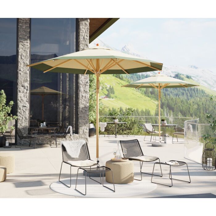 Details: Die Stripe-Version unserer Sonnenschirme besticht durch eine farbig abgesetzte Umrandung an der Schirmbespannung. Diese elegante Kontur verleiht dem Schirm eine grafische Tiefe und betont seine Form auf stilvolle Weise.